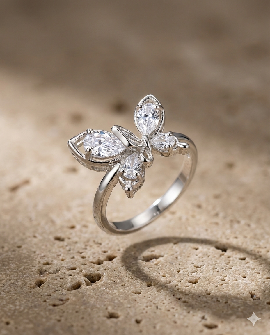 El toque de brillo perfecto para tus momentos más cálidos. Este anillo captura la delicadeza de una mariposa y la transforma en una joya moderna y sofisticada.
