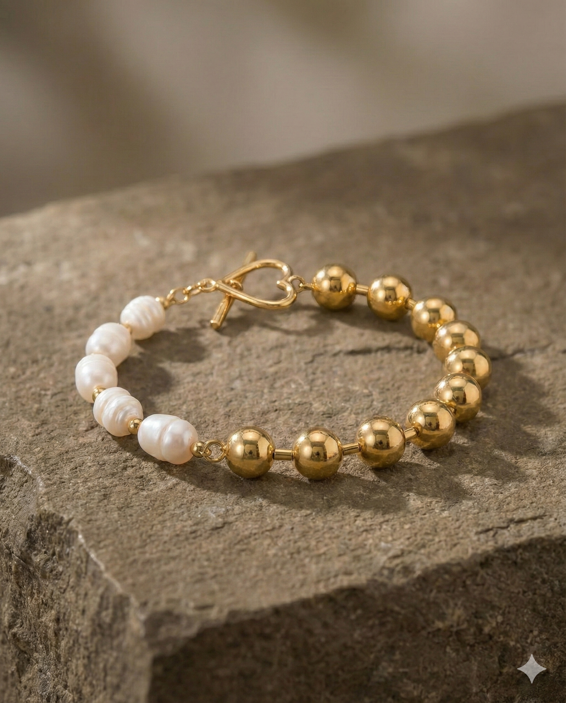 Elevá tu estilo con un diseño que combina la calidez del acero dorado pulido y la elegancia clásica de las perlas irregulares. Su exclusivo cierre le aporta un toque romántico y moderno, ideal para destacar en tu día a día o en ocasiones especiales.